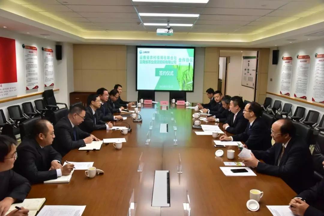 省農(nóng)信社副主任馬寧輝、李梅,省農(nóng)擔(dān)公司總經(jīng)理杜開波、副總經(jīng)理廖寅皓及雙方各有關(guān)部門負(fù)責(zé)同志參加了簽約儀式。此項(xiàng)儀式的成功舉行,標(biāo)志著云南省最大的農(nóng)業(yè)信貸機(jī)構(gòu)與擔(dān)保機(jī)構(gòu)間強(qiáng)強(qiáng)合作,支持“三農(nóng)”發(fā)展、助力鄉(xiāng)村振興步入新階段,邁上新臺(tái)階。