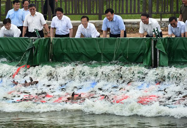 6月7日,作為“全國(guó)放魚日”主會(huì)場(chǎng)活動(dòng),農(nóng)業(yè)農(nóng)村部會(huì)同江西省人民政府在“長(zhǎng)江之腎”鄱陽湖聯(lián)合舉辦水生生物增殖放流活動(dòng),農(nóng)業(yè)農(nóng)村部部長(zhǎng)韓長(zhǎng)賦,江西省委書記、省長(zhǎng)劉奇等出席活動(dòng)。活動(dòng)期間,共向鄱陽湖放流四大家魚、河蟹和胭脂魚等水生生物苗種230余萬尾,還首次采用無線電遙測(cè)技術(shù),對(duì)鄱陽湖長(zhǎng)江江豚的晝夜活動(dòng)規(guī)律開展研究,為更好地保護(hù)和拯救長(zhǎng)江江豚提供科學(xué)支撐。