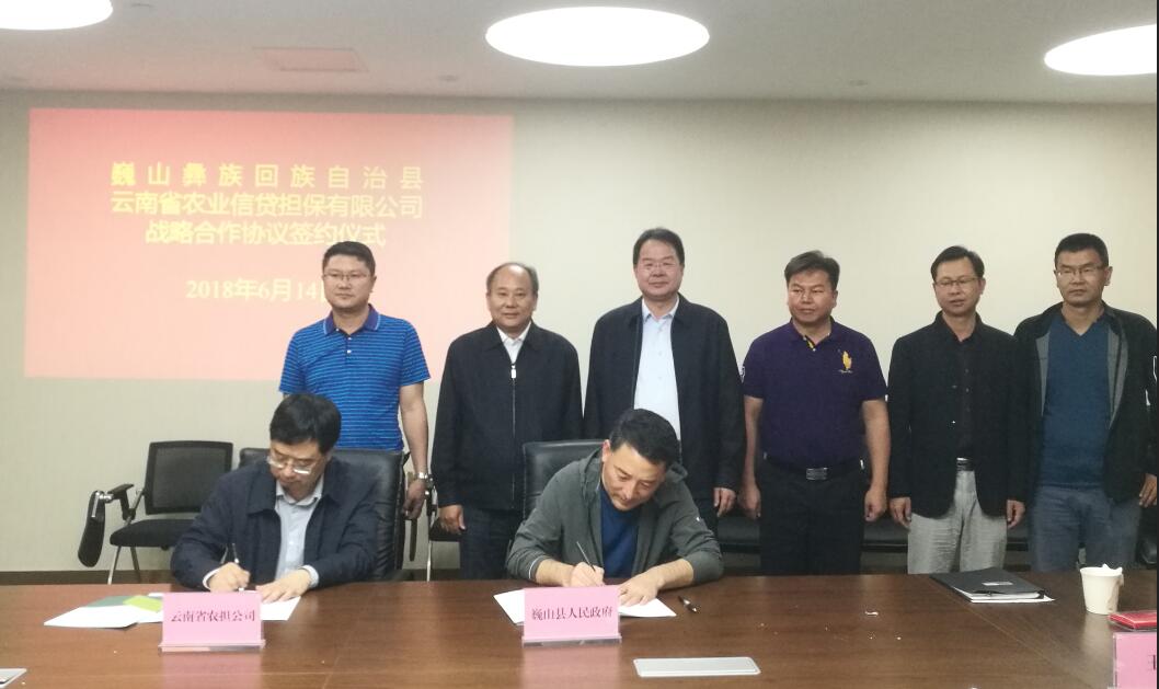 6月14日上午,公司與巍山彝族回族自治縣簽訂了戰(zhàn)略合作協(xié)議。巍山縣縣委副書記、縣長王利偉率縣財政局、農(nóng)業(yè)局及巍山縣農(nóng)村商業(yè)銀行與省農(nóng)擔(dān)公司進(jìn)行座談,省農(nóng)擔(dān)公司郭影董事長、杜開波總經(jīng)理參加會議,雙方就共同推進(jìn)巍山縣農(nóng)擔(dān)工作深入交換意見。