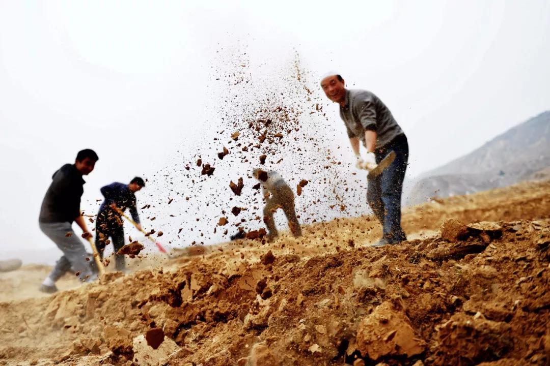 甘肅臨夏回族自治州駐村扶貧干部在東鄉(xiāng)族自治縣高山鄉(xiāng)布楞溝村幫助農民平地種樹(2015年4月1日攝)?!⌒氯A社記者 陳斌 攝