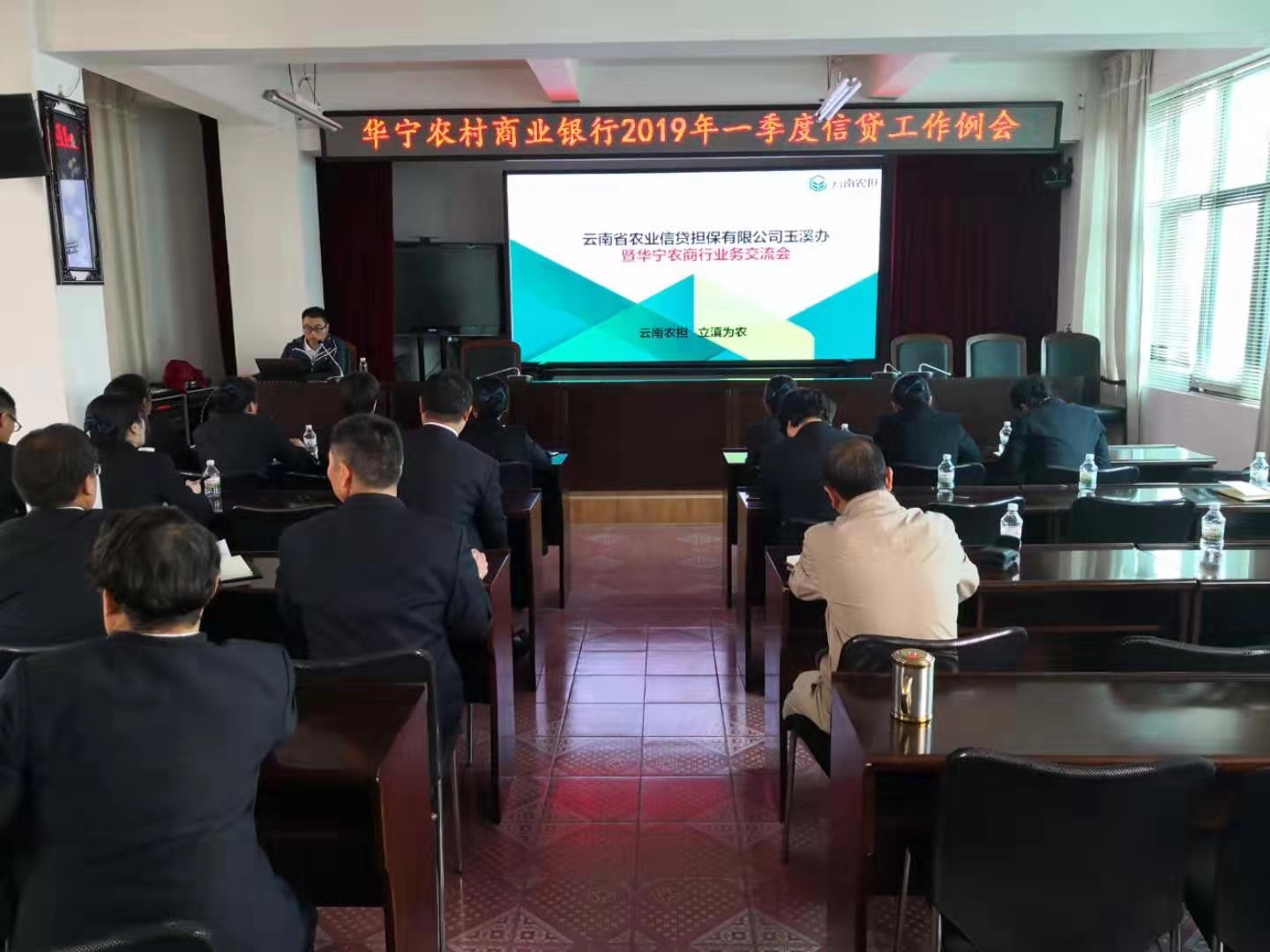 2019年3月7日,玉溪辦事處業(yè)務(wù)主管莽林琦攜辦事處成員應(yīng)邀參加華寧農(nóng)商行業(yè)務(wù)交流會(huì)并現(xiàn)場開展了業(yè)務(wù)培訓(xùn)。華寧農(nóng)商行祿永圣副行長、信貸部負(fù)責(zé)人簡達(dá)、各支行分管信貸工作副行長及信貸工作人員全體參加了會(huì)議。