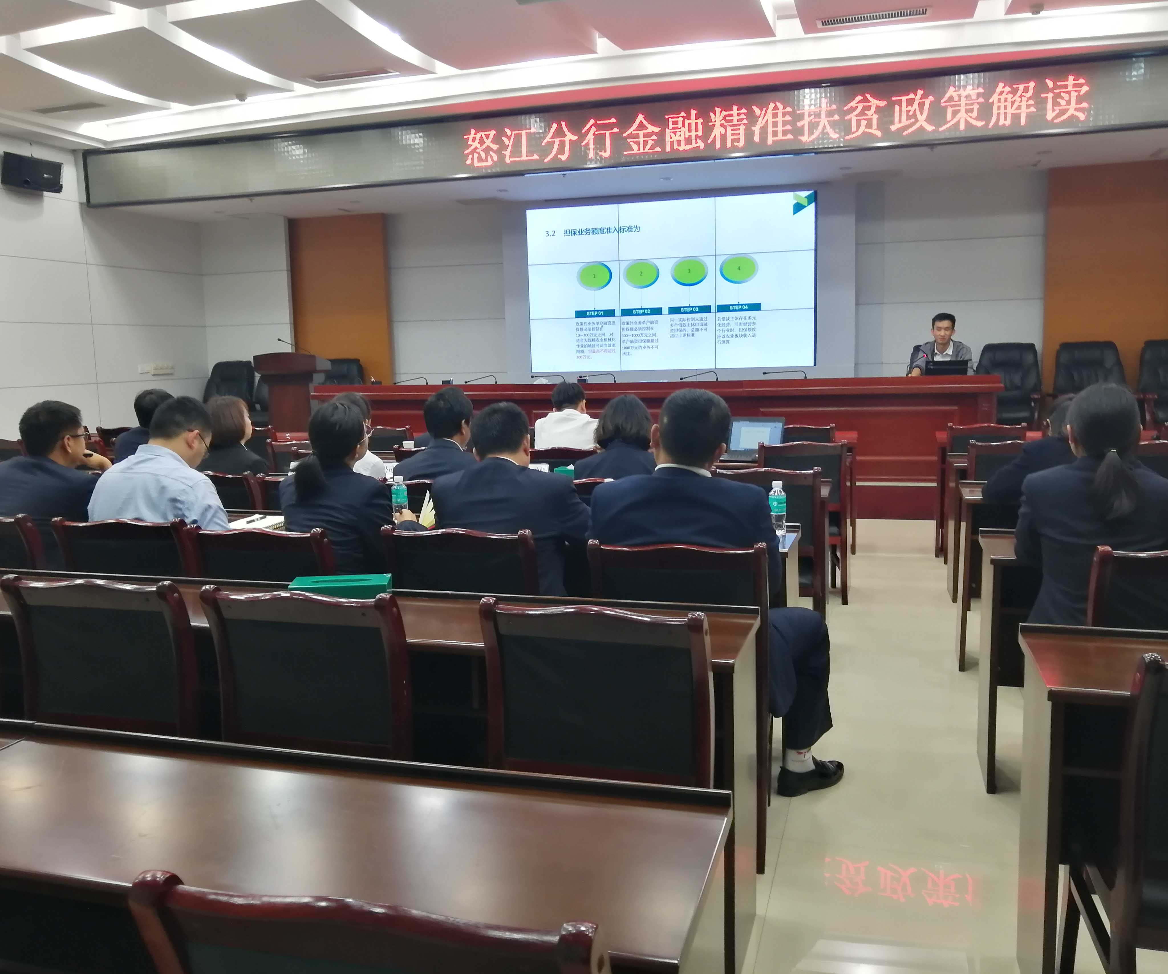 2019年3月27日,瀘水辦事處全體人員參加了農(nóng)業(yè)銀行瀘水市支行的“銀擔(dān)保座談會(huì)”,并現(xiàn)場(chǎng)開(kāi)展了業(yè)務(wù)培訓(xùn)。農(nóng)業(yè)銀行怒江州副行長(zhǎng)李磊、怒江州副行長(zhǎng)段玉珊,瀘水市副行長(zhǎng)李婧,和各縣市分行客戶(hù)經(jīng)理出席了會(huì)議。