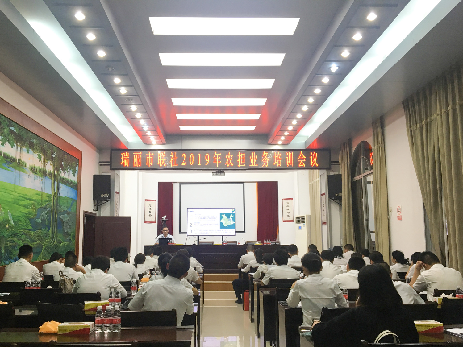 今天的德宏,是我國“一帶一路”的重要國際陸港、面向南亞東南亞輻射中心的關(guān)鍵點、中緬經(jīng)濟走廊的門戶樞紐。為更好的推動自由貿(mào)易試驗區(qū)瑞麗市的業(yè)務(wù)開展,深化銀擔(dān)合作,10月29日,德宏辦事處項目經(jīng)理閆忠魁、尹瑞、張雯雯一行赴瑞麗市農(nóng)村信用合作聯(lián)社開展業(yè)務(wù)交流座談會,并受邀進行業(yè)務(wù)培訓(xùn)會。瑞麗市聯(lián)社監(jiān)事長尹金能、副主任郭建材、信貸部經(jīng)理施婷及市內(nèi)各網(wǎng)點主任及信貸經(jīng)理共40人參會。