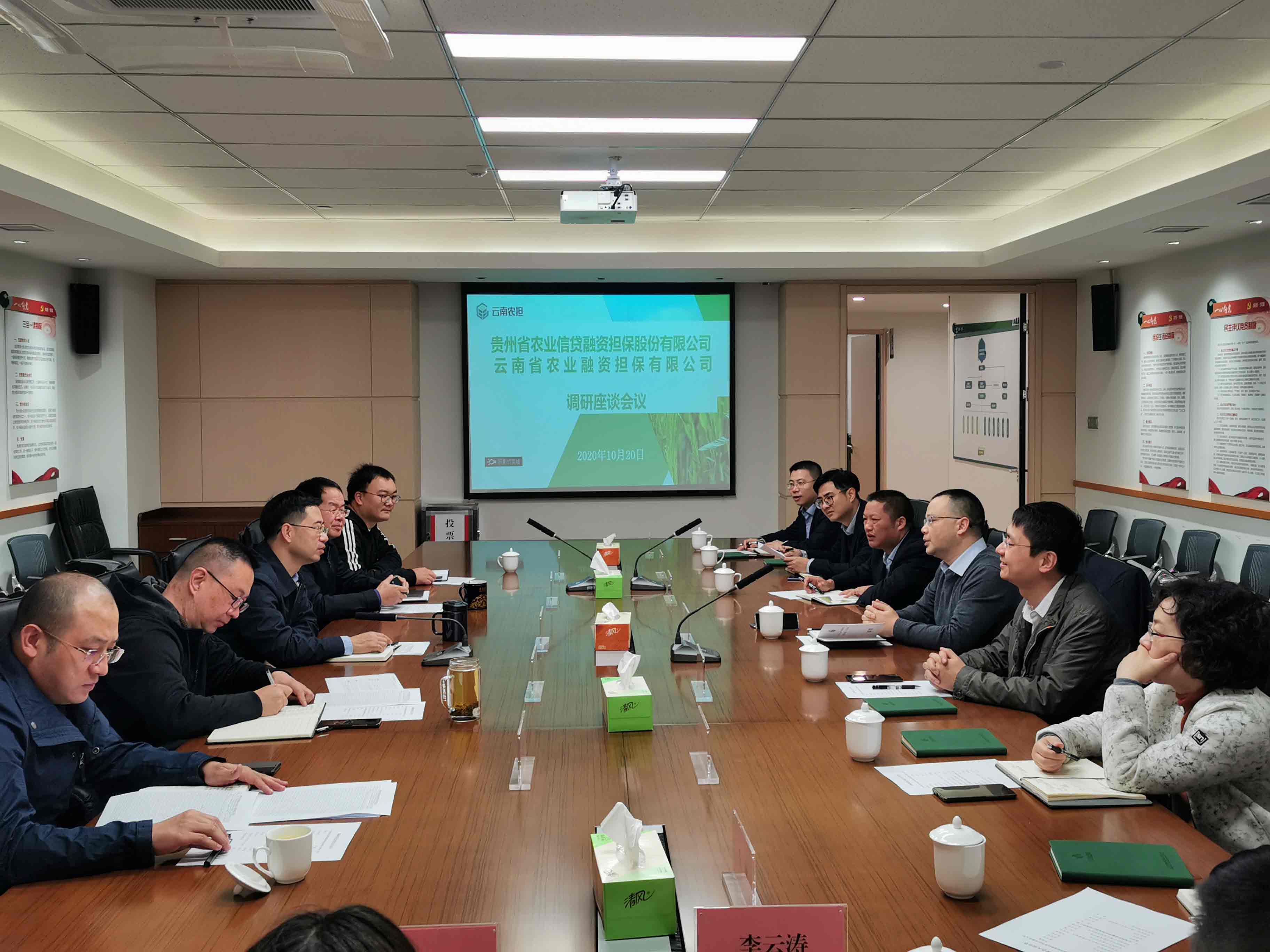 10月19日-20日,貴州農(nóng)擔(dān)公司董事長(zhǎng)羅道斌、副總經(jīng)理唐方宇、風(fēng)控總監(jiān)祖文周一行赴云南農(nóng)擔(dān)調(diào)研交流。云南農(nóng)擔(dān)公司董事長(zhǎng)郭影、總經(jīng)理杜開波、副總經(jīng)理廖寅皓率農(nóng)擔(dān)一部、風(fēng)控部、戰(zhàn)略部與貴州農(nóng)擔(dān)公司進(jìn)行了交流座談。