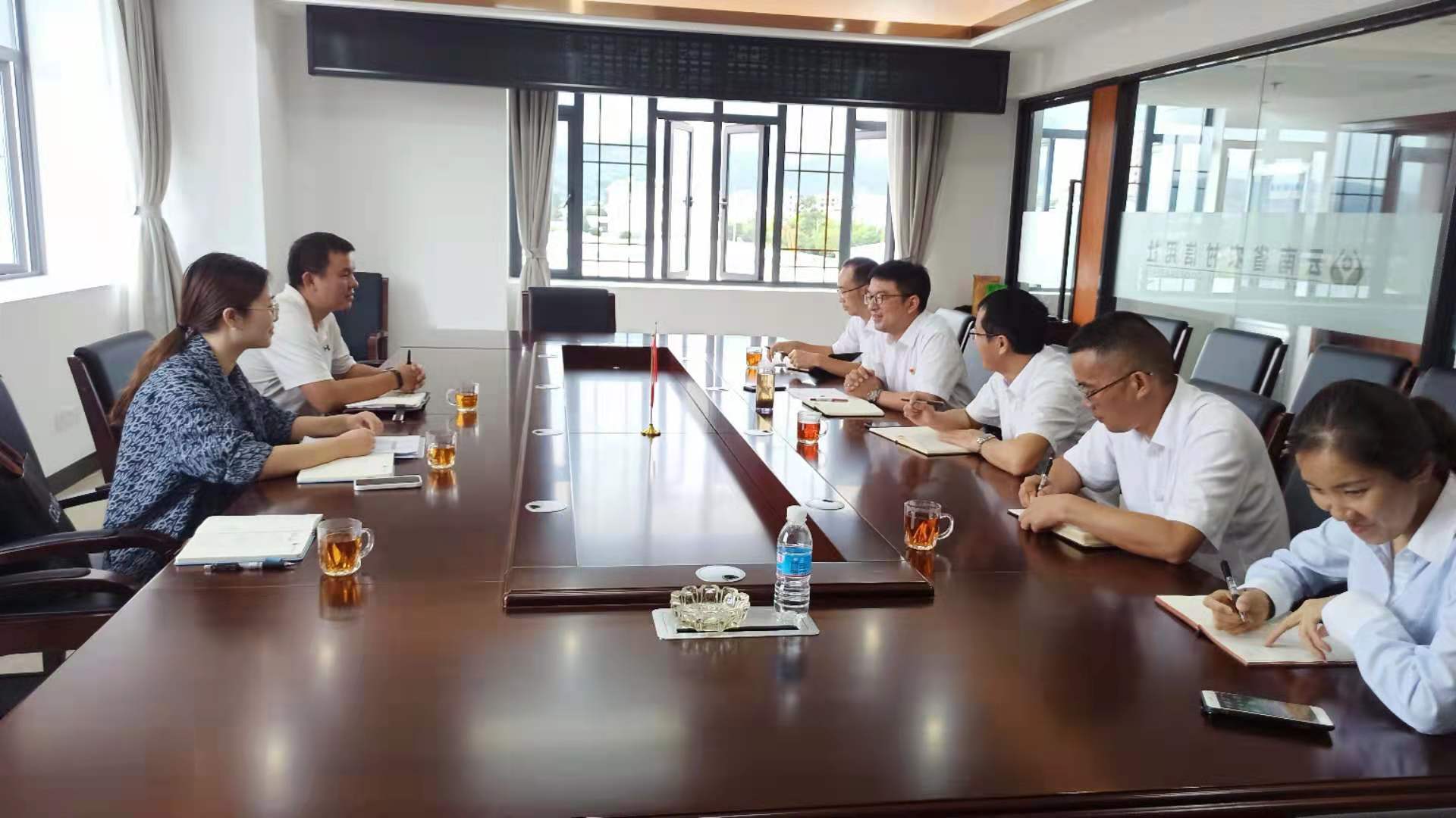 2021年9月8日,業(yè)務(wù)發(fā)展部副經(jīng)理寸明杰帶領(lǐng)保山辦事處副主任胡幫露、項(xiàng)目經(jīng)理竇云云到施甸農(nóng)商行開(kāi)展業(yè)務(wù)座談,施甸農(nóng)商行董事長(zhǎng)席建飛、行長(zhǎng)楊慶龍、業(yè)務(wù)發(fā)展部經(jīng)理李頌堂、信貸部經(jīng)理岳忠艷、風(fēng)險(xiǎn)部經(jīng)理?xiàng)铋_(kāi)華參加會(huì)議。