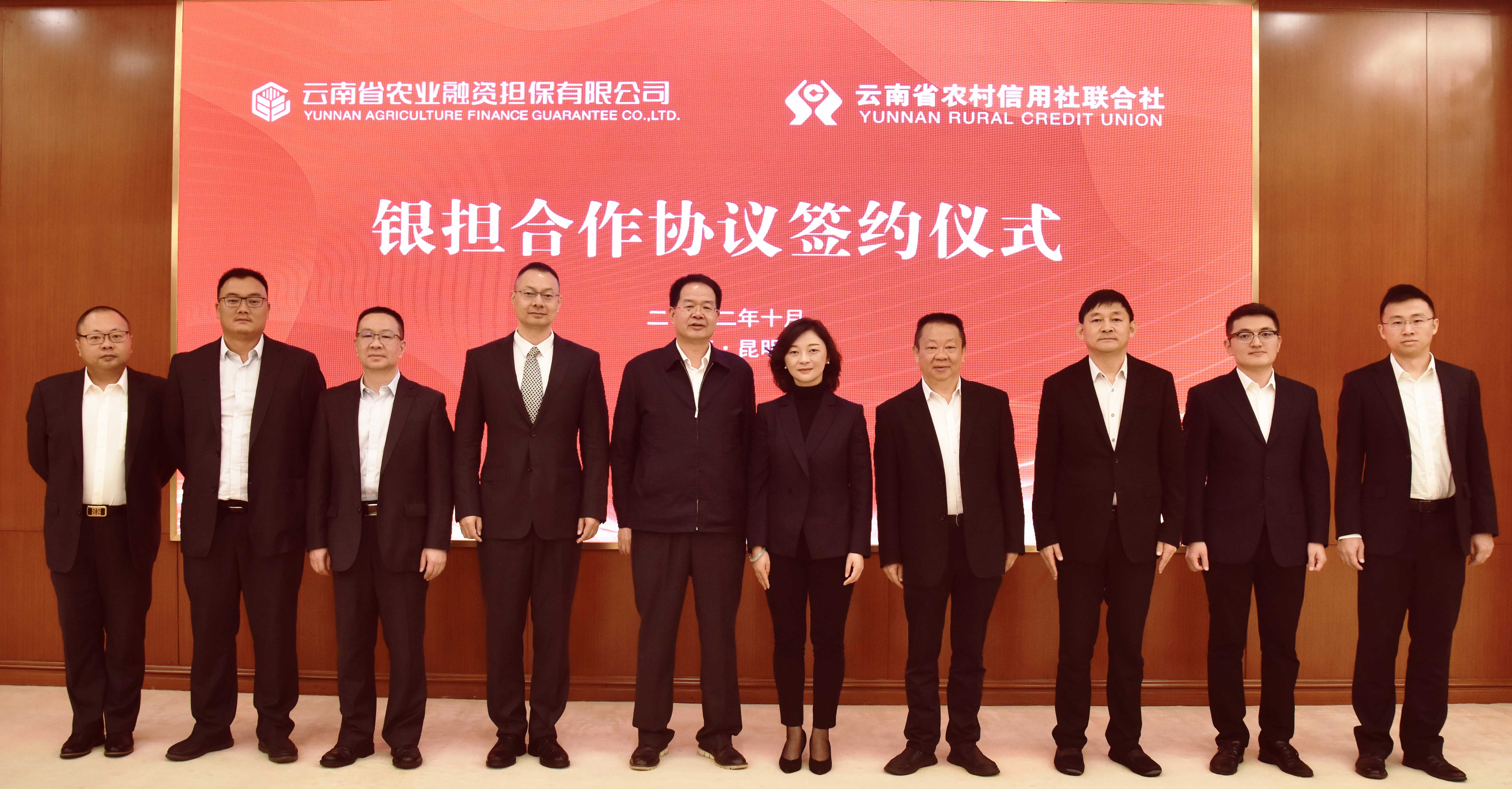 10月11日上午,云南省農(nóng)業(yè)融資擔(dān)保有限公司與云南省農(nóng)村信用社聯(lián)合社業(yè)務(wù)座談會(huì)暨銀擔(dān)合作協(xié)議簽約儀式在農(nóng)信社省聯(lián)社舉行。省聯(lián)社黨委委員、副主任納瑞華,公司董事長杜開波、總經(jīng)理李世偉、副總經(jīng)理廖寅皓出席會(huì)議。省聯(lián)社公司金融部、信貸管理部,省農(nóng)擔(dān)公司業(yè)務(wù)發(fā)展部、戰(zhàn)略發(fā)展部負(fù)責(zé)人及有關(guān)同志參加儀式。會(huì)上,雙方簽署了銀擔(dān)合作協(xié)議,并就深化銀擔(dān)合作進(jìn)行了深入交流。