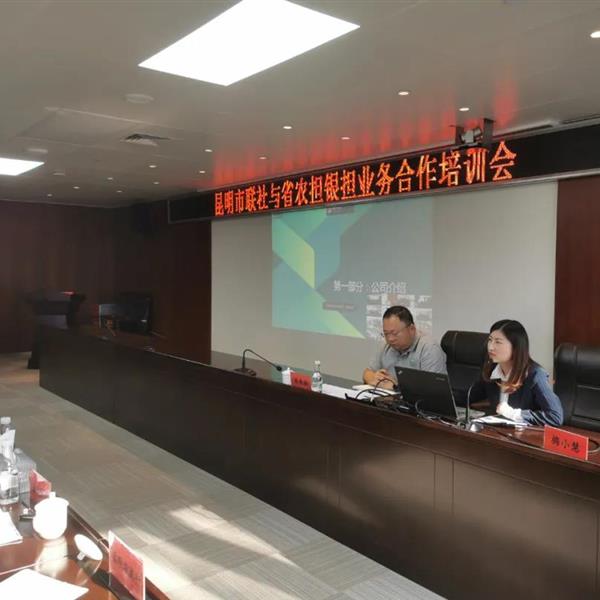 2020年11月18日,農(nóng)擔二部負責人張長浩攜昆明業(yè)務團隊到昆明市農(nóng)村信用合作聯(lián)社參加“昆明市聯(lián)社與省農(nóng)擔銀擔業(yè)務合作培訓會”。