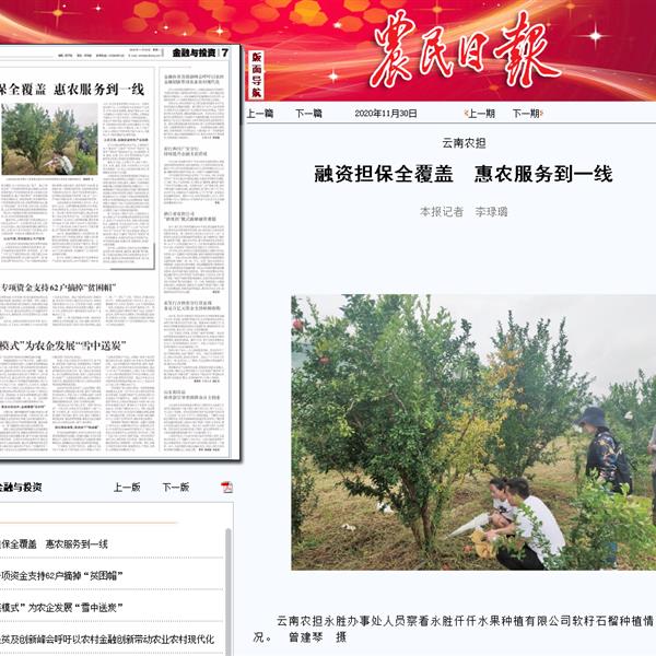 《農(nóng)民日報》點贊云南農(nóng)擔惠農(nóng)服務見成效